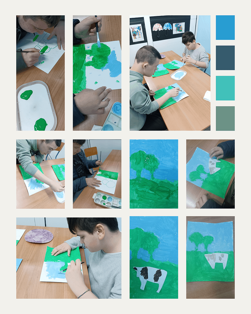 Ζωγραφίζουμε όμορφες εικόνες από τη φύση και φτιάχνουμε χειροτεχνίες εμπνευσμένες από την άνοιξη! Συνδυάζουμε τεχνικές σχεδίου, ζωγραφικής και κολάζ.