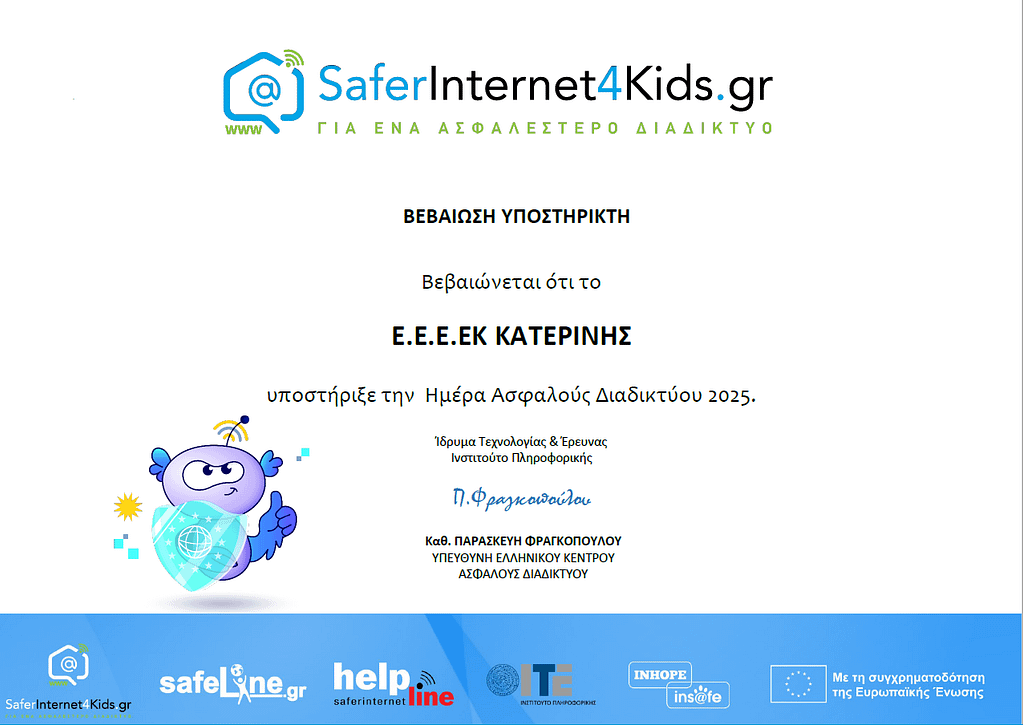 Με μεγάλη χαρά ανακοινώνουμε ότι το σχολείο μας δημιούργησε μια δυνατή συμμαχία στο πλαίσιο της πρόκλησης «Εβδομάδα Προγραμματισμού για Όλους» και καταφέραμε να κερδίσουμε το Πιστοποιητικό Αριστείας! Δείτε Περισσότερα…
