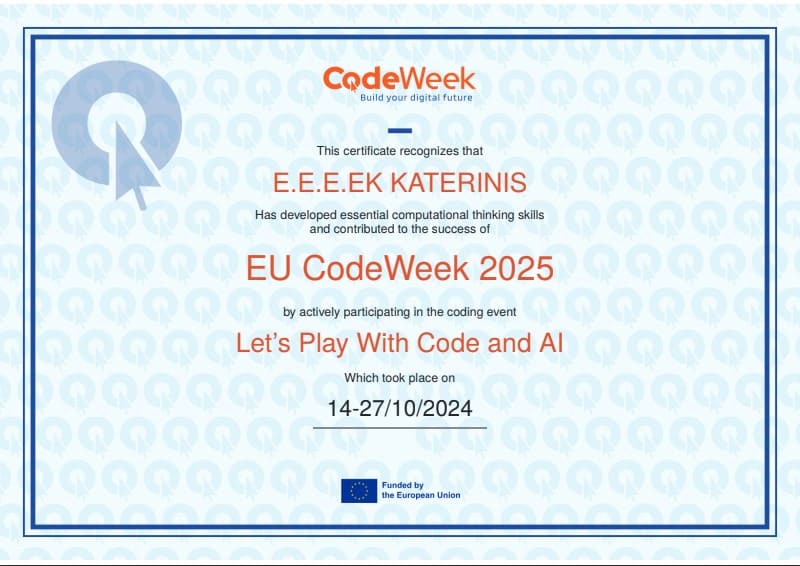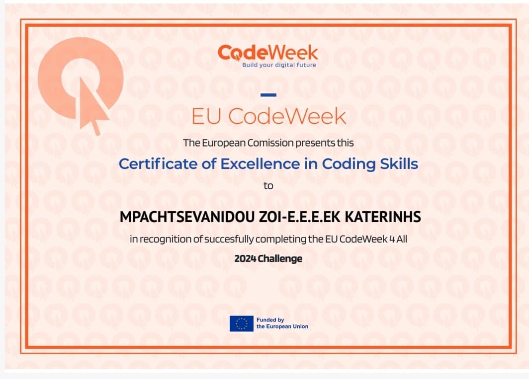 Πιστοποιητικό Αριστείας στην Ευρωπαϊκή Εβδομάδα Προγραμματισμού!